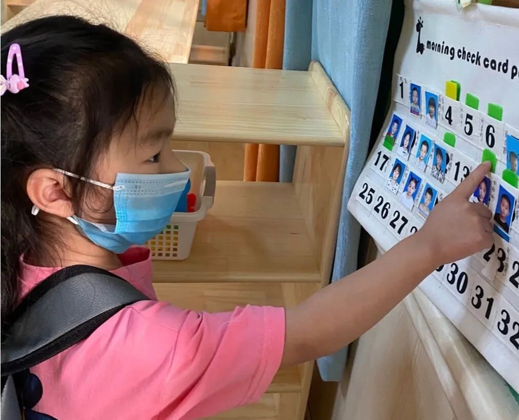 入班插晨检卡、换鞋和整理书包。